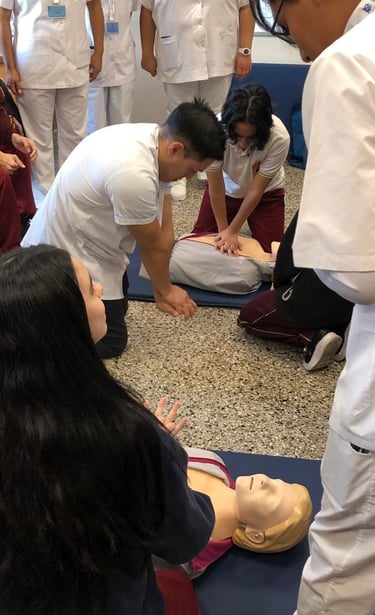 Taller diseñado para enseñar a los estudiantes cómo responder en casos de emergencias médicas, específicamente en situaciones en las que una persona puede estar experimentando un paro cardíaco o dificultades respiratorias.